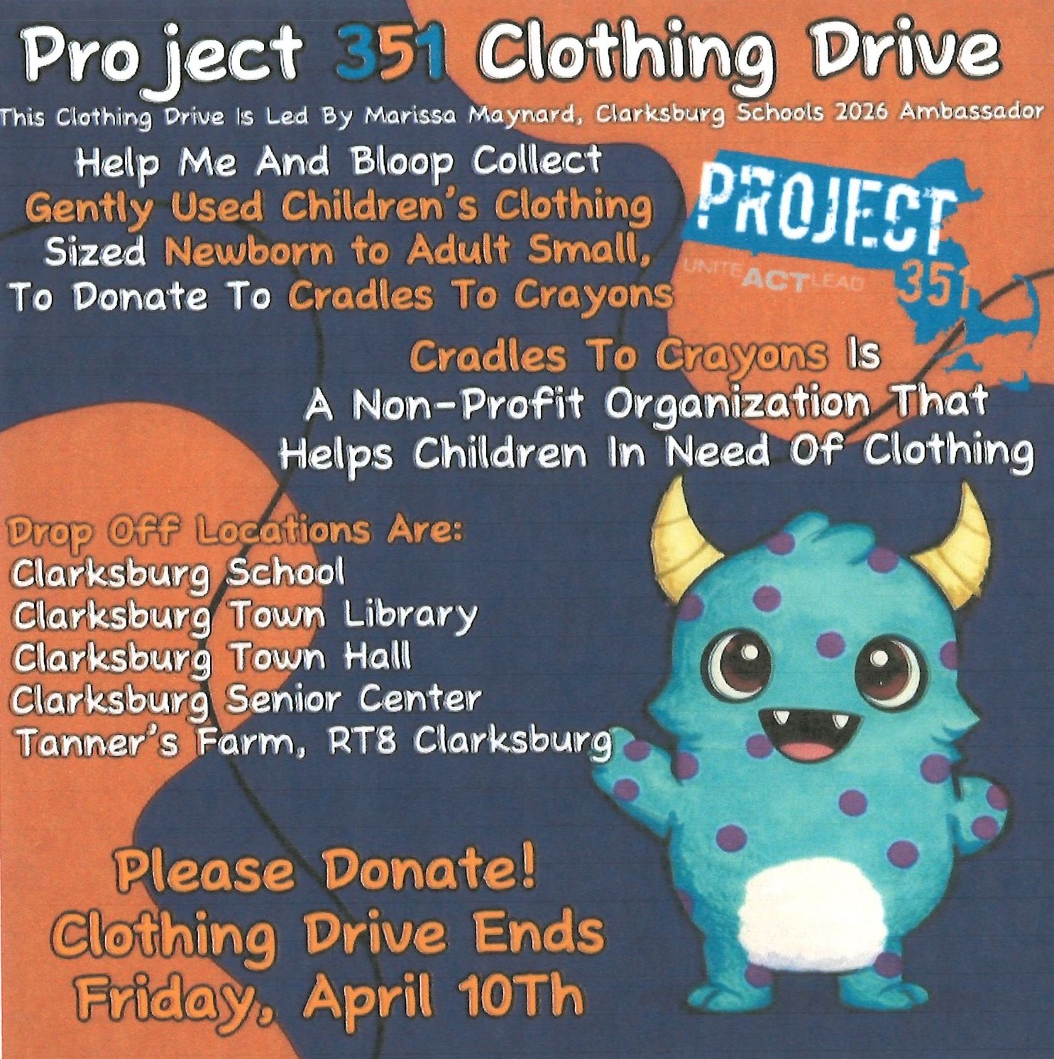 The Town of Clarksburg is proud to support a community clothing drive led by Marissa Maynard, Clarksburg Schools 2026 Ambassador, as part of Project 351.